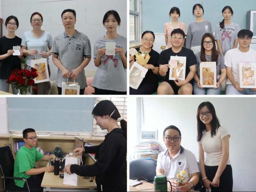 当日,校园内处处洋溢着温馨的氛围,同学们分成多个小组,分别前往各个老师的办公室。同学们围在老师身边,一边将承载心意的礼物一一送上,一边与老师亲切交流,感谢老师们日常无微不至的陪伴与引导,感谢他们在课堂上传道授业解惑,用专业知识为自己搭建起通往未来的桥梁。