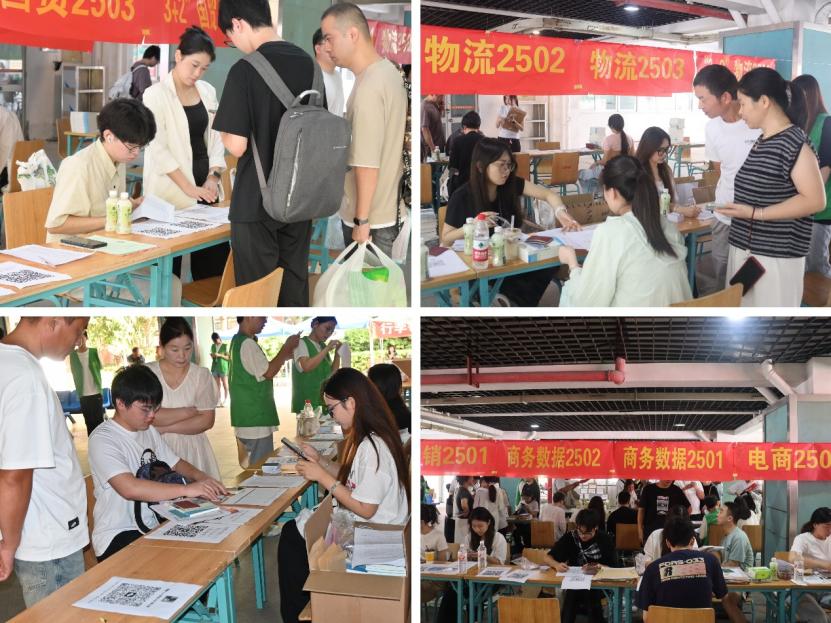 志愿者热情协助新生,奔波在校园的各个角落,主动帮新生提拿行李,细致指引报到流程,耐心解答各类疑问。即便汗水打湿了衣服,他们的笑容依旧真挚,这份热忱不仅让新生感到无比的贴心与温暖,更彰显出商贸学子的奉献精神与青春担当。