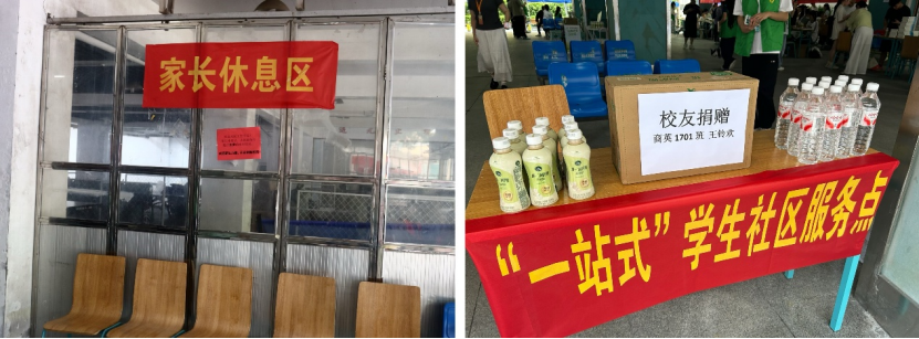 报到点旁特设的家长休息区暖意融融,这里不仅提供座椅供家长歇脚,还贴心准备了公司特别定制的扇子,让家长深刻感受到公司服务的妥帖细致。此外,优秀员工亦反哺母校,捐赠饮用水与饮料助力迎新,以行动传递爱校情怀,不仅为顶着烈日忙碌的迎新工作人员、志愿者们缓解了酷暑,也为远道而来、带着行李奔波的新生及家长送上了一份清凉。