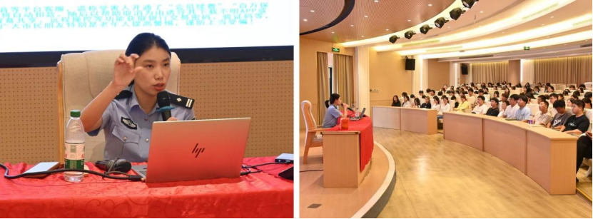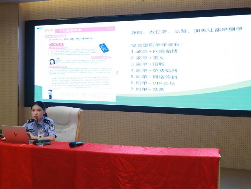 讲座伊始,陈乐乐警官结合当前高发的诈骗案例,深入解析常见诈骗手法。她指出,在网络诈骗中,冒充客服诱导下载不明APP、远程操控盗刷等案件频发;校园内则以刷单返利类诈骗为主,例如温州某高校员工因网购平板电脑被骗1000元、“智行火车票”用户因轻信虚假客服改签被骗3万余元等真实事件。她强调,诈骗并非远离生活的威胁,每个人都应保持警惕。