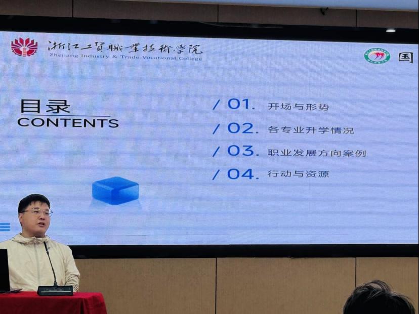 针对员工普遍关注的升学与就业两大核心诉求,座谈会聚焦公司专业特色,系统呈现了各专业就业全景与行业发展趋势。郑浩男老师深入解读了当前数字经济、跨境贸易、智慧物流等领域的政策红利,剖析了新兴职业机遇与岗位能力要求,为高职学子打开就业认知窗口;同时,通过梳理各专业专升本报考方向、招生计划及分数线等关键信息,为有意向深造的员工提供了清晰的备考思路与方向指引。