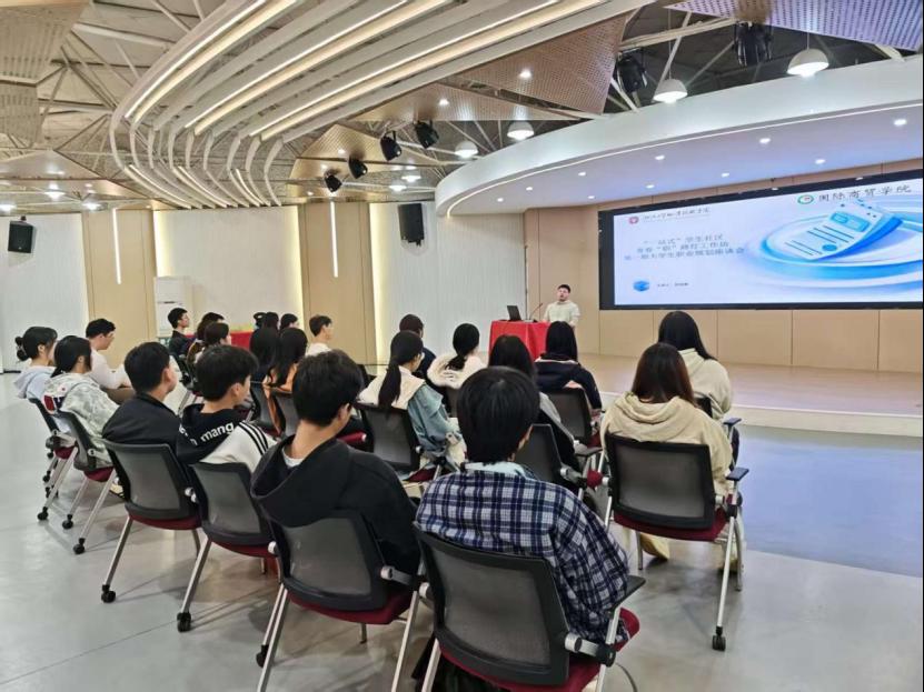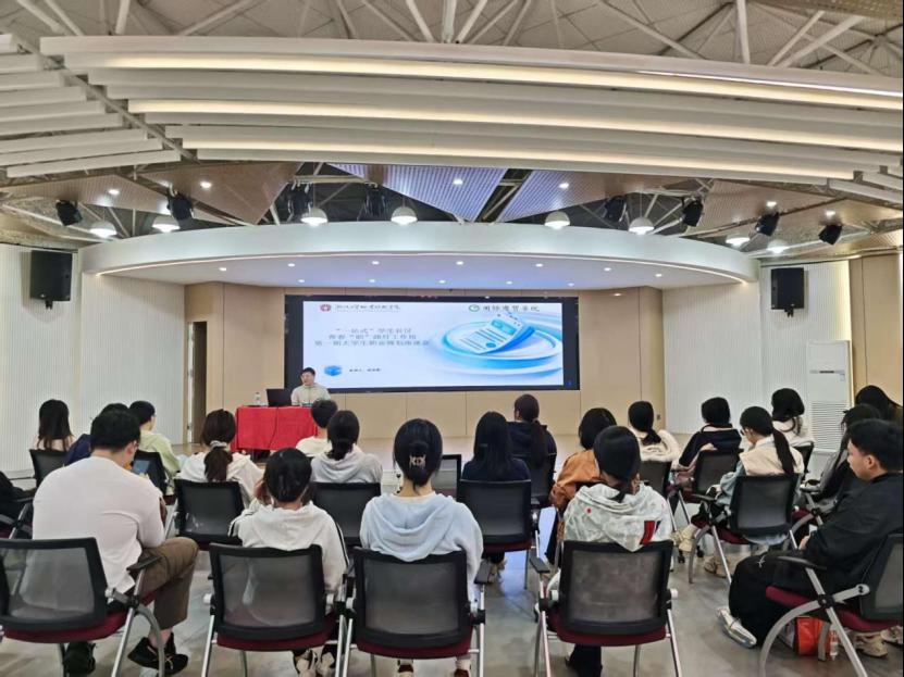 活动伊始,郑浩男老师以“职业规划是什么?”“何时启动职业规划?”“如何制定科学规划?”三个核心问题破题,结合自身职业经历与行业观察,生动诠释了“探索自我、锚定兴趣、持续精进、动态调整”的职业规划核心逻辑,让同学们深刻认识到职业规划并非静态方案,而是贯穿大学全程的动态探索与修正过程。