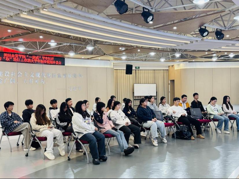 在职业成长案例分享环节,郑老师以各专业优秀毕业生发展路径为蓝本,勾勒出“单证专员-外贸主管”“电商运营-品牌负责人”“数据处理-战略分析师”等多条成才赛道,明确了不同岗位所需的核心技能与积累方向。此外,他还为同学们量身定制了“大一奠基(夯实基础、探索兴趣)、大二提升(聚焦方向、积累技能)、大三冲刺(精准发力、落地目标)”的阶段性行动路线,鼓励大家充分利用公司实训平台、社团资源、企业实习等机会,主动积累实践经验,为职业理想筑牢根基。