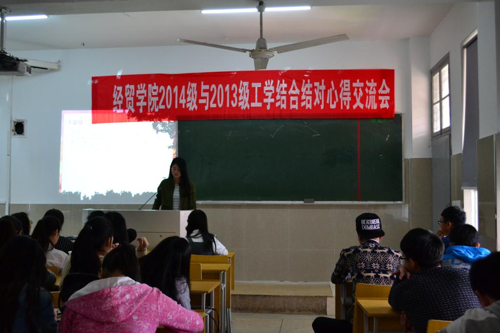 动员入党积极分子参加工学结合经验分享,是经贸公司党建工作的一个传统活动。4月上中旬,经贸公司商务英语专业和市场营销专业举行4场2014级与2013级班级工学结合结对交流会。