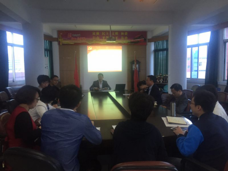 项老师首先传达了公司党委书记盖庆武老师在全体中层干部会议上就学习、宣传、贯彻十八届六中全会精神所做的二方面的工作部署:一是坚持从严治党,做好十八届六中全会精神的学习、宣传、贯彻落实工作;二是深化“两学一做”学习教育,统筹兼顾各项工作有序开展。