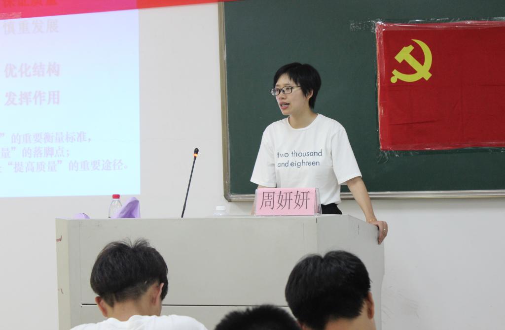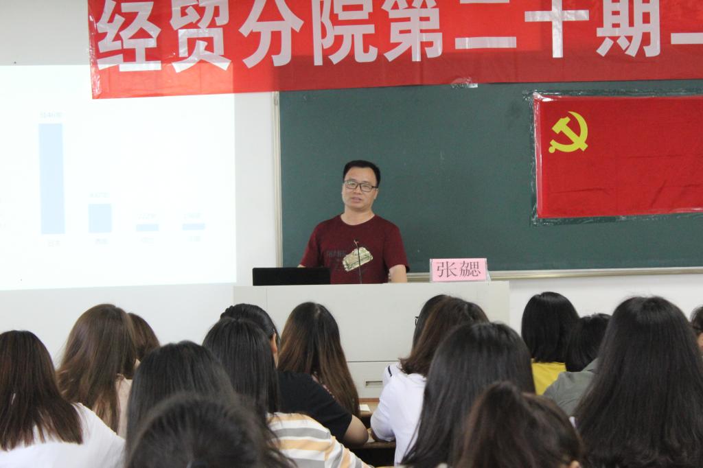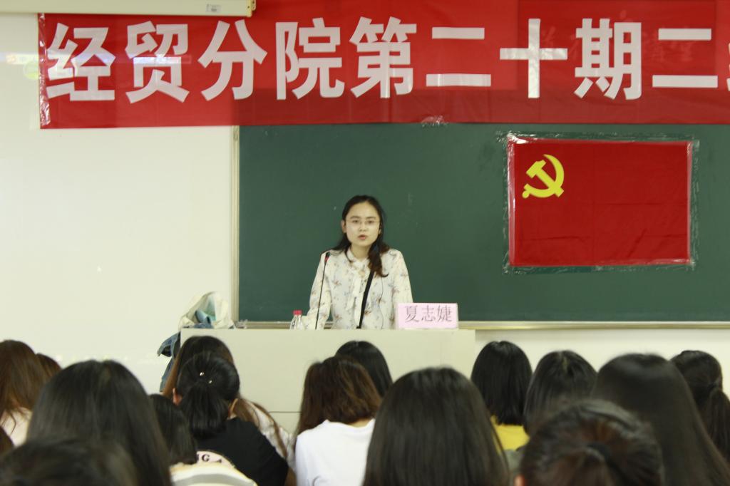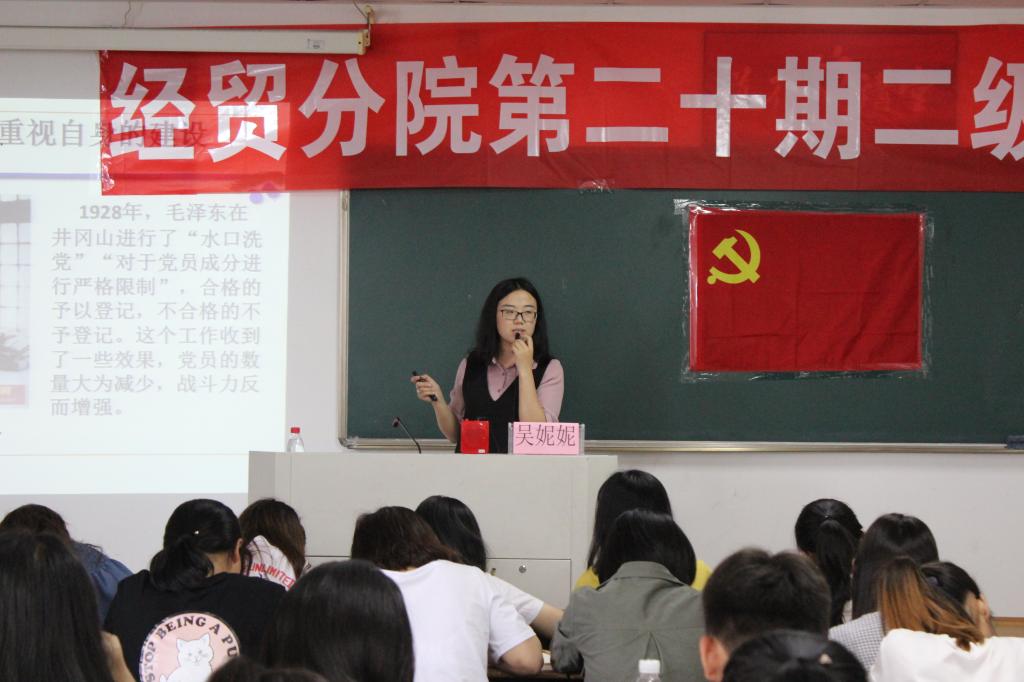 第五讲由经贸分院员工第一党支部书记周妍妍老师主讲,具讲解了党员发展的4个阶段和28项程序,并要求学员们做到材料规范填写,主动及时递交相关材料等。