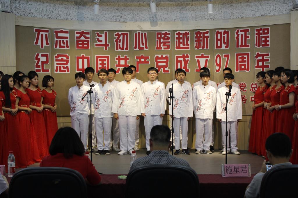 在大合唱《五月的鲜花》中,活动拉开序幕。“五月是七月的铺垫,共青团是党的后备力量。九十七年的沧桑巨变,共青团始终保持着与时俱进的勃勃生机。九十七年岁月峥嵘,共青团始终紧跟党的脚步,创造青春的辉煌。”手语舞表演《追光者》,体现了当代青年青春的活力与优美。观看纪录片《厉害了,我的国》的片段,深切地感受了中国这九十七年来的变化。诗朗诵《信念永恒》,信仰是共产党高扬的旗帜,如同血脉般融入党的肌体。员工党员和发展对象带来的大合唱《我爱你中国》,歌唱出了学子们对祖国的情怀。