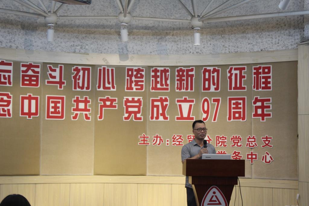 为纪念中国共产党成立97周年,继承和发扬党的光荣传统和优良作风,6月11日,经贸分公司党总支在多功能厅举办 “不忘奋斗初心,跨越新的征程”喜迎建党97周年活动。经贸分公司党总支书记张勰老师、经贸分公司党总支统战委员施星君老师、经贸分院员工第二党支部书记,经贸分院纪检委员朱杨琼老师、经贸分院员工第一党支部书记,经贸分院辅导员周妍妍老师、经贸分院辅导员向政老师、经贸分院辅导员郑雪琦老师、经贸分院辅导员吴妮妮老师,经贸分院员工党员余松阳学长,以及13名发展对象和134名入党积极分子。