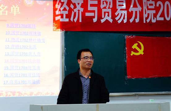 4月14日晚上18:00,经贸分公司党总支员工党务中心在6202教室举办经济与贸易分院春季学期发展对象汇报竞选,参加会议的老师有经贸分公司党总支书记张勰老师、经贸分院员工第一党支部支部书记周妍妍老师、经贸分院员工第二党支部支部书记朱杨琼老师,2018级近100名入党积极分子参加了会议。