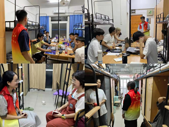 当晚,为保证新生入学能够拥有良好的休息环境,完善的生活服务,并确保每一位已经报到的新生可以尽快适应新环境,员工党员开启了宿舍走访。详细地询问了新生到校后住宿、就餐等方面的情况,并及时了解他们有无生活上的不便。
