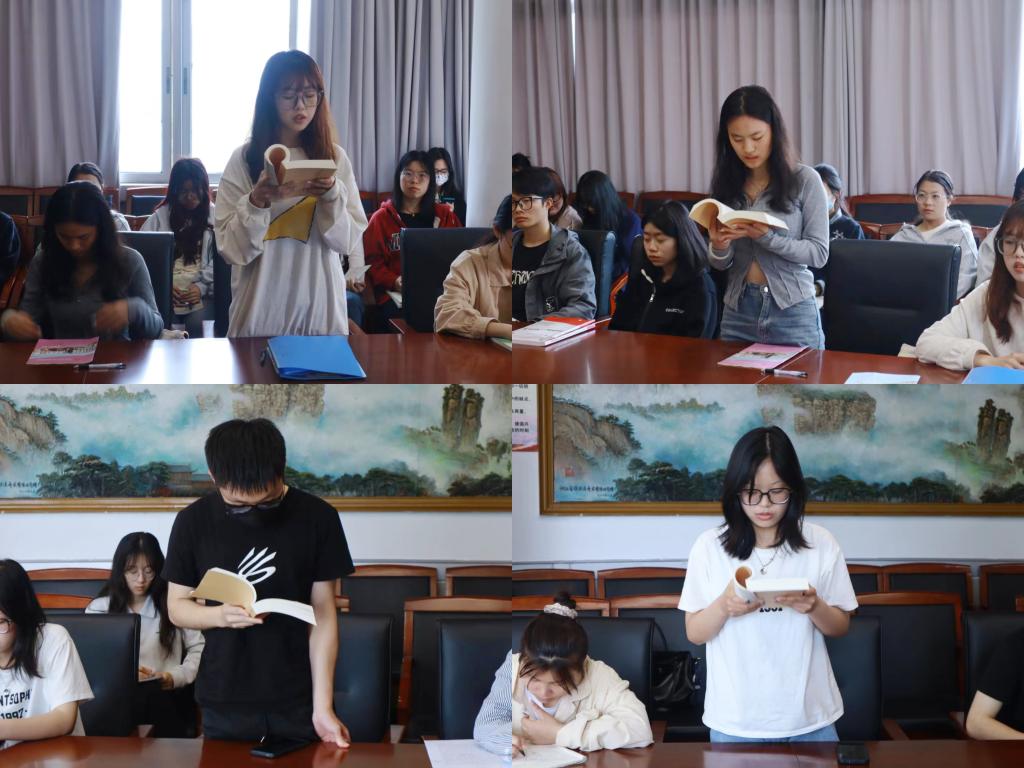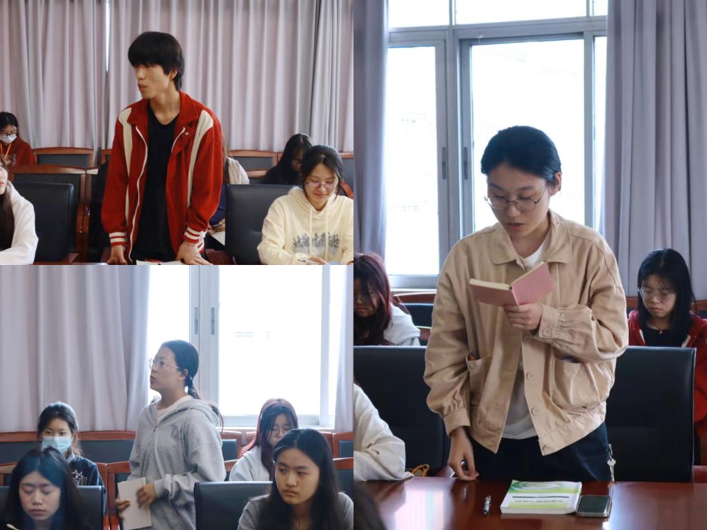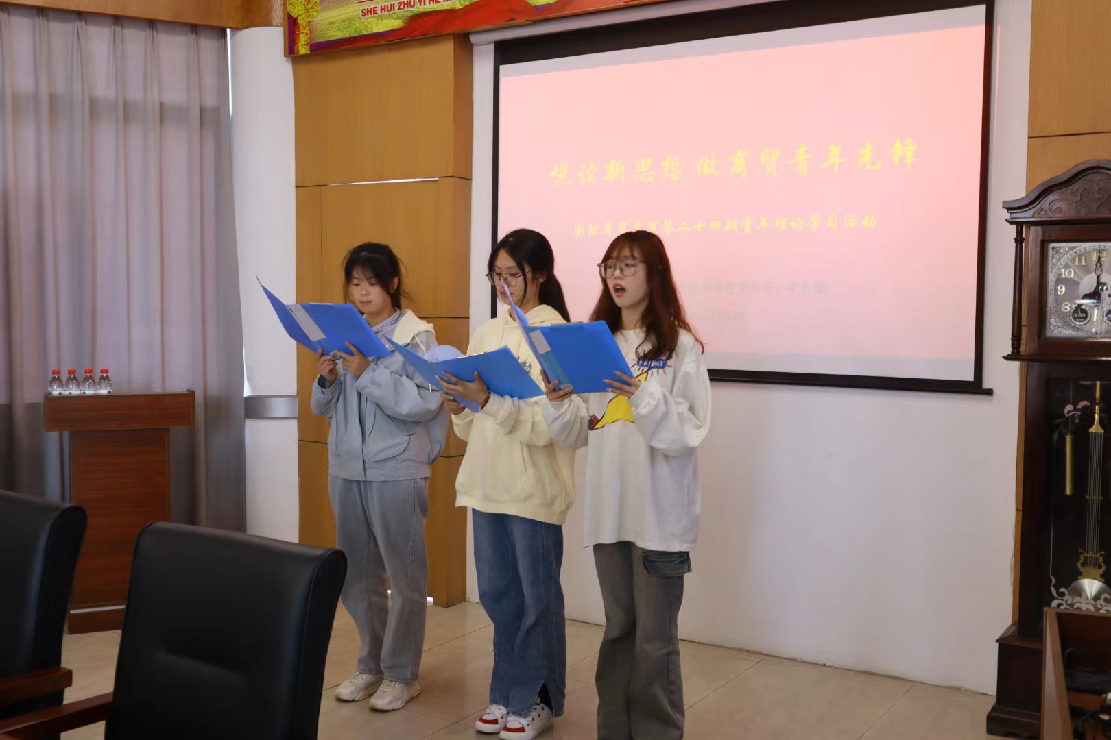 商英2203班的金姚、营销2202班的江丽君、商数2202班的高欣雨、物流2201班的张福洋四位同学接力朗读了《习近平著作选读》第一卷、第二卷的片段,进入新时代十年以来,有涉滩之险,有爬坡之艰,有闯关之难,党和国家事业实现一系列突破性进展,取得一系列标志性成果。通过学习过去五年的工作和新时代十年的伟大变革,成员们更加深刻地领悟到他们既生逢盛世,又重任在肩,既是第一个百年奋斗目标的经历者、见证者,更是实现第二个百年奋斗目标、全面建设社会主义现代化国家的先锋队、主力军。