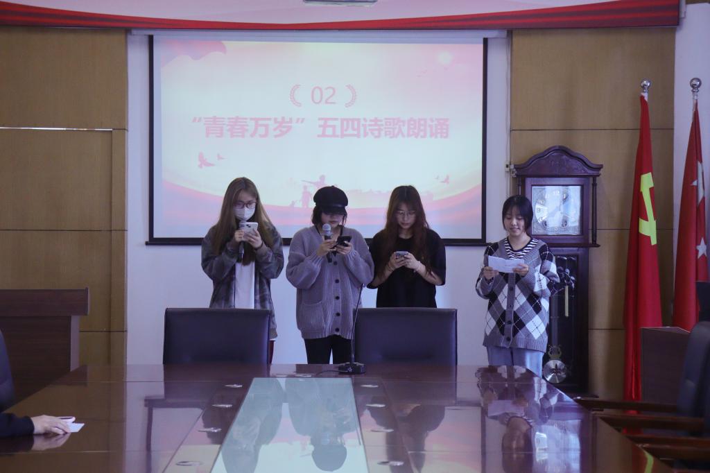 活动开始,副会长带领同学们一起面向国旗,奏唱国歌。紧接着,朱一丹、吴丹丹、楼雨丹和洪艺珈四位同学朗诵了《青春万岁》。在学习会上,同学们一同观看五四青年运动的完整视频,并从中感受到什么是五四精神的力量,什么是爱国主义。同学们紧扣主题,表达了自己对五四精神学习的体会。商英2301班程乙水说我们青年员工应当拥护党的领导下,成为时代的先锋,用坚定的信念、良好的品德、丰富的知识和过硬的能力,成为祖国建设的有用人才。商英2304陈雪认为青年要惜时如金,挤出尽量多的时间读书治学;还要像海绵汲水一样汲取知识,用知识充盈自我。