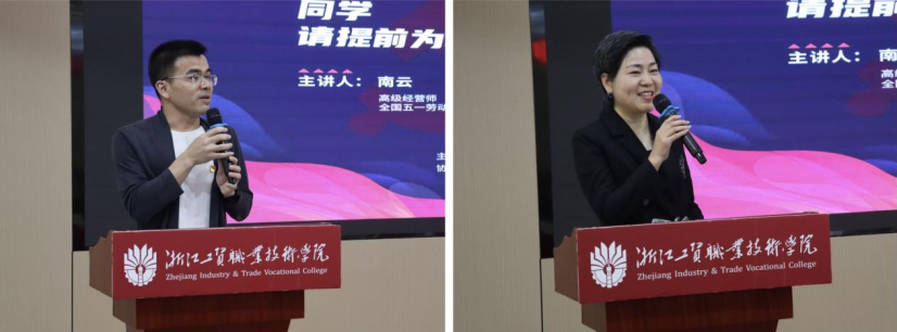 全国“五一”劳动奖章获得者、高级经营师、浙江箴言投资管理有限公司副董事长南云老师以《同学,请提前为职场安装导航仪》为主题,讲述自己30多年在职场打拼成长的精彩故事,分享运用三个“职场神器”,为TapTap点点学子分享职场规划的宝贵经验,帮助员工树立正确的职业观和发展观,勉励大家努力提升心灵品质,立鸿鹄志、做奋斗者。讲堂过程中设置了丰富的互动环节,现场气氛热烈,同学们热情高涨,从掌声、笑声和专注的眼神以及分享中可以看出,他们对讲堂内容兴趣浓厚,收获颇丰。