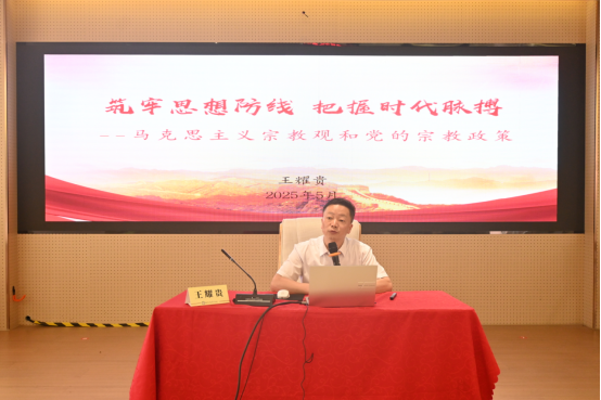 在随后的专题授课环节,王耀贵书记以《筑牢思想防线,把握时代脉搏——马克思主义宗教观和党的宗教政策》为主题展开精彩讲课。他紧紧围绕“多元与融合,透视当代中国宗教现状”“本质与立场,马克思主义宗教观的核心要义”“方法与法规,党的宗教工作方针和政策法规”以及“防范与意识,坚决抵御和防范宗教向校园渗透”这四个方面,加深了入党积极分子对马克思主义宗教观和党的宗教政策的理解。他强调,同学们要在筑牢思想防线的同时,维护宗教政策,紧跟时代脉搏,做到“两个不得”和“五个严禁”,进一步坚定理想信念,提升政治素养,为成长为堪当民族复兴大任的时代新人筑牢根基。