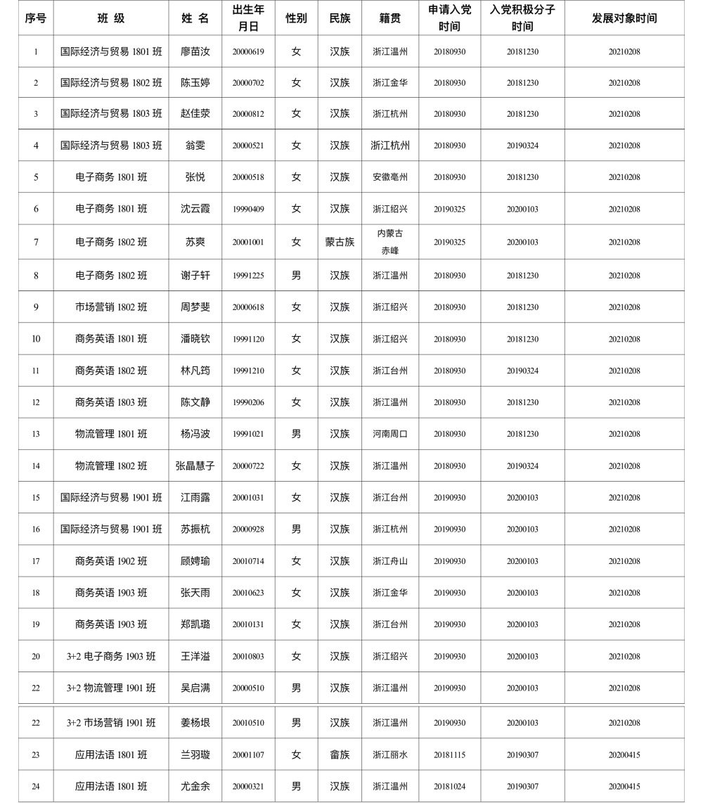 关于拟吸收廖苗汝等24位同志为中共预备党员的公示