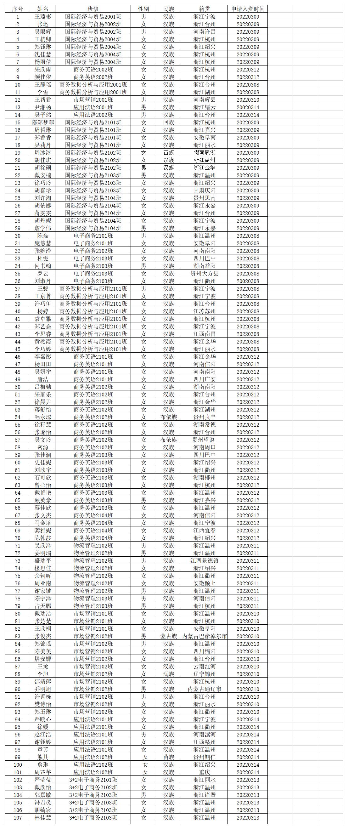 根据入党自愿的原则,王臻彬等107位同志于2022年3月向党组织书面提交了入党申请书,经党支部审查,现将其要求入党的意愿予以公示。在公示期间内,欢迎广大党内外群众来信(署名)、来电、来访反映问题。