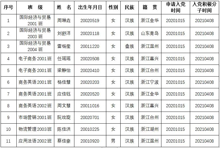 据本人申请、组织培养,经党支部研究,拟将周琳垚等11位同志确定为发展对象,现将其有关情况予以公示。在公示期间内,欢迎广大党内外群众来信(署名)、来电、来访反映问题。