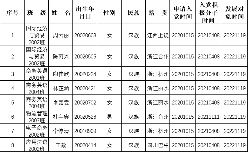 关于拟吸收周云丽等8位同志为中共预备党员的公示