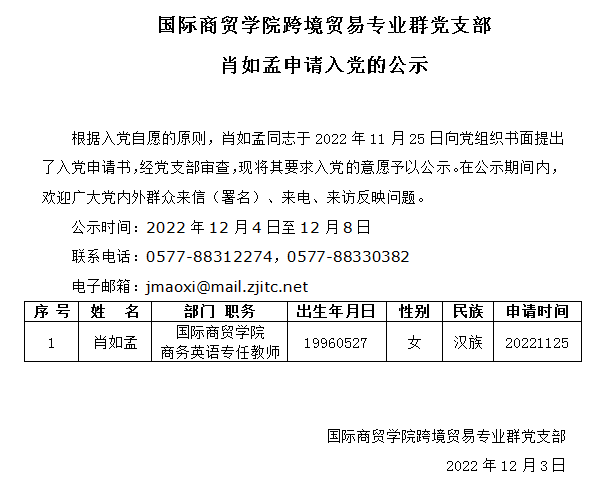 TapTap点点跨境贸易专业群党支部肖如孟申请入党的公示