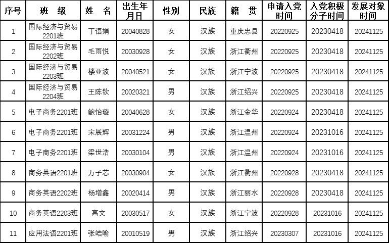 关于拟吸收丁语娟等11位同志为中共预备党员的公示